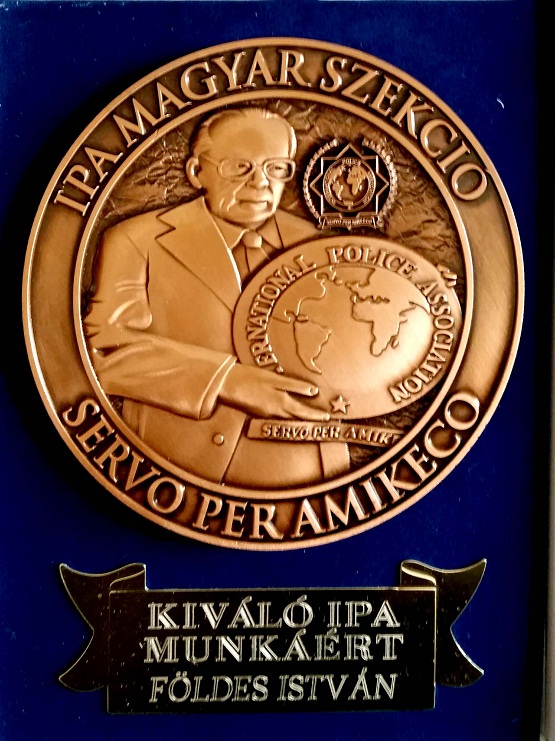 A Nemzetközi Rendrőrség által adományozott kitüntetés átadása Földes Istvánnak