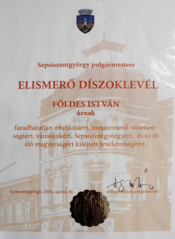 Sepsiszentgyörgy - Elismerő Oklevél