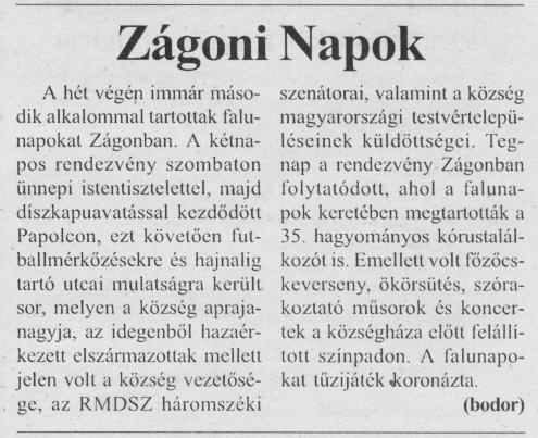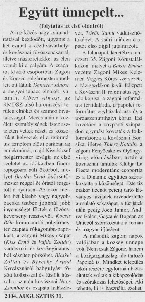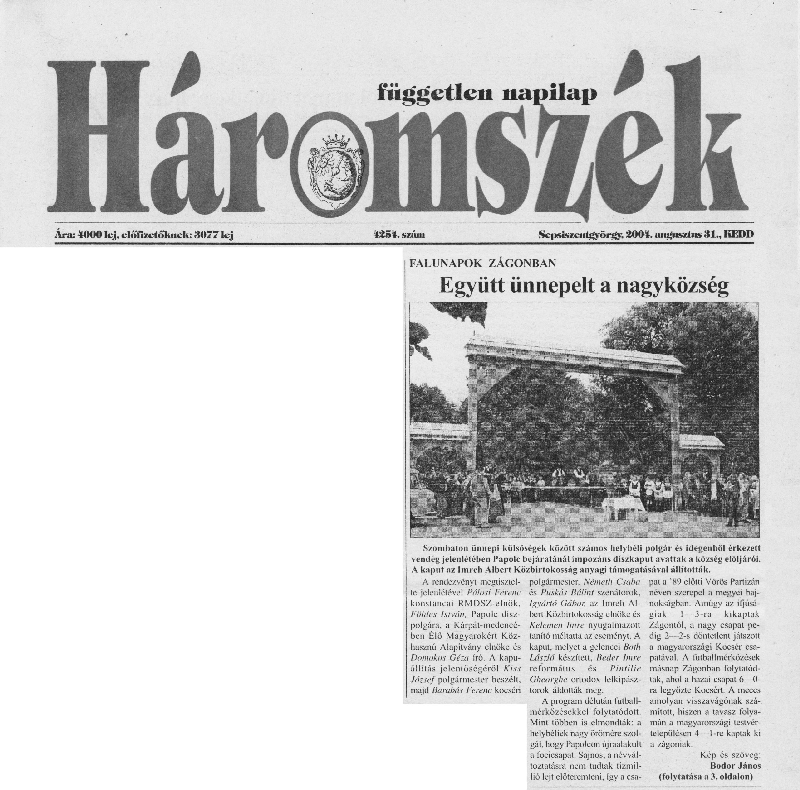 Rövid hír a „Háromszék” aug. 30-ai számának címlapján.