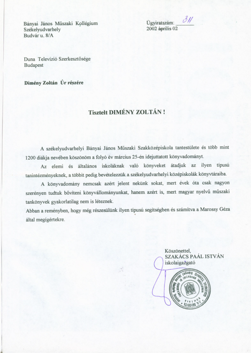 Műszaki könyvek a Bányai János Kollégiumnak