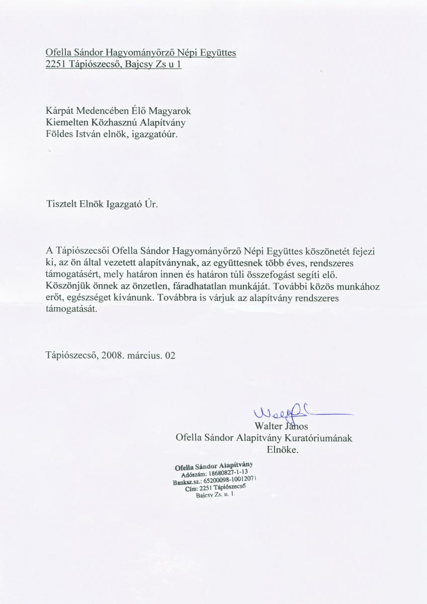 Köszönet - Ofella Sándor Hagyományörző Népi Együttes
