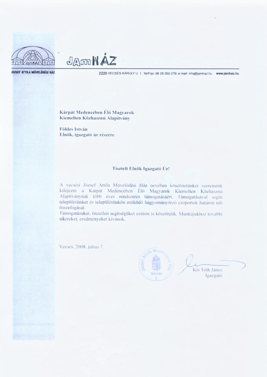 Köszönet - József Attila Művelődési Ház, Vecsés