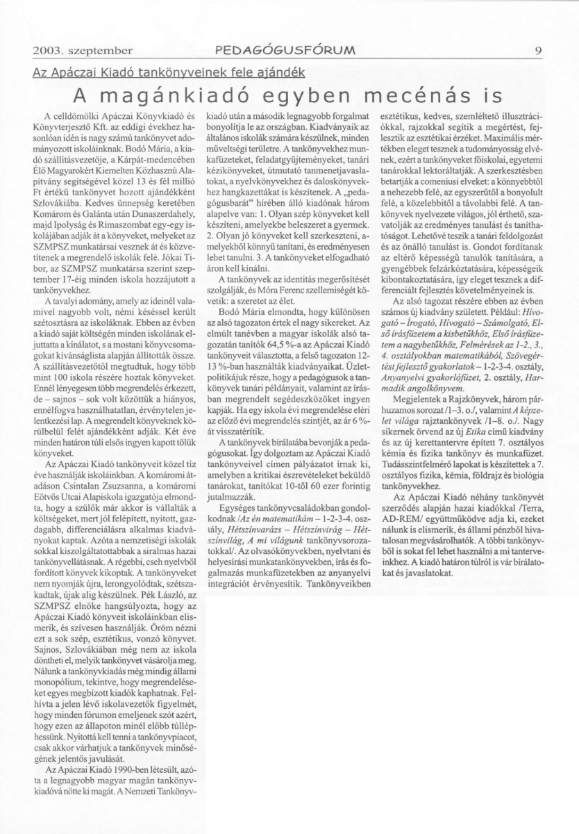 A szlovákiai „Pedagógusfórum” c. lap 2003 szeptemberi számában megjelent cikk.