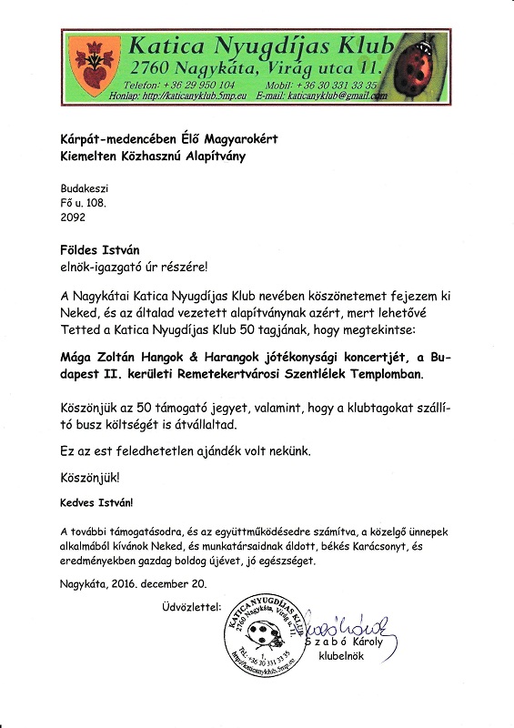 Köszönőlevél - Ceferino