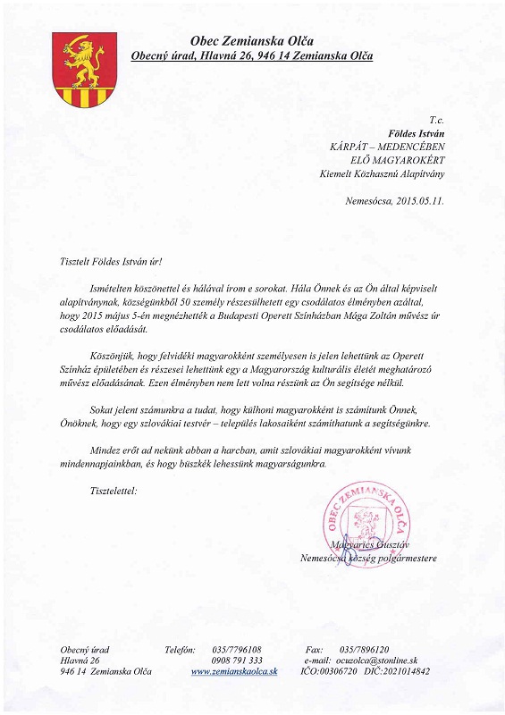 Köszönőlevél - Nemesócsa
