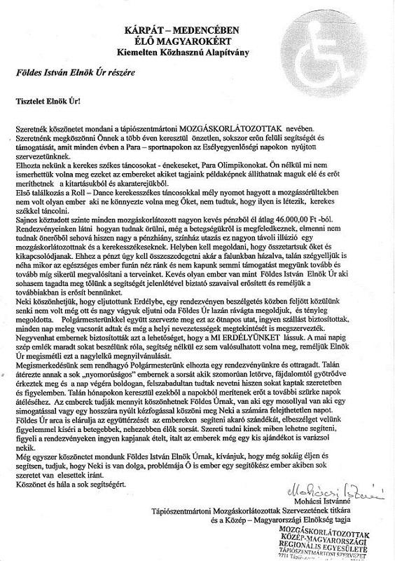 Köszönőlevél - Tápiószentmártoni Mozgáskorlátozottak