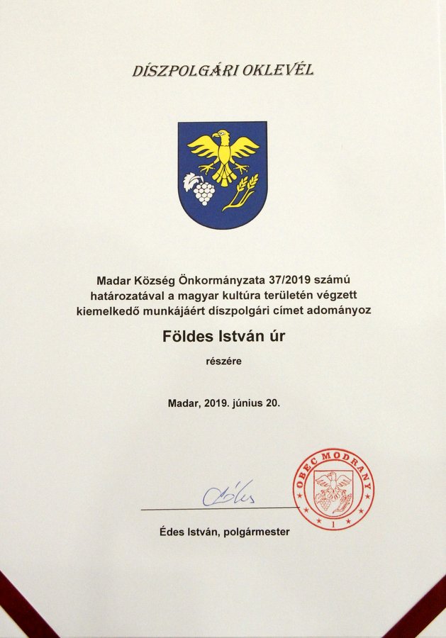 Madar Díszpolgára