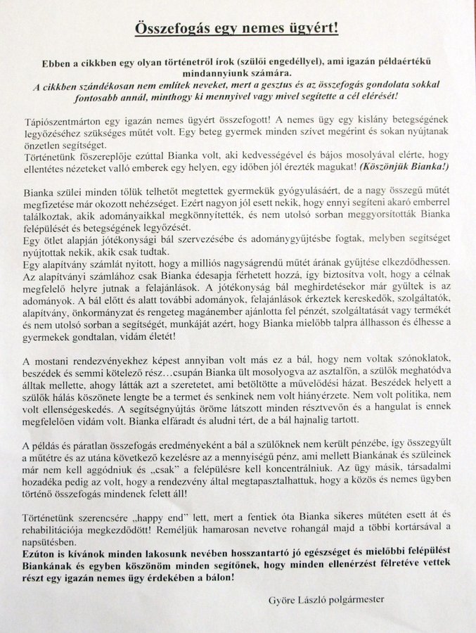 Jótékonysági koncert egy gyermek külföldi műtétjéhez